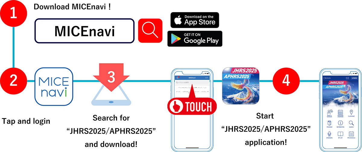Search for our congress app by typing “JHRS2025/APHRS2025” into the search bar. You will see an event come up with our JHRS2025/APHRS2025 logo. Tap on JHRS2025/APHRS2025 and download.